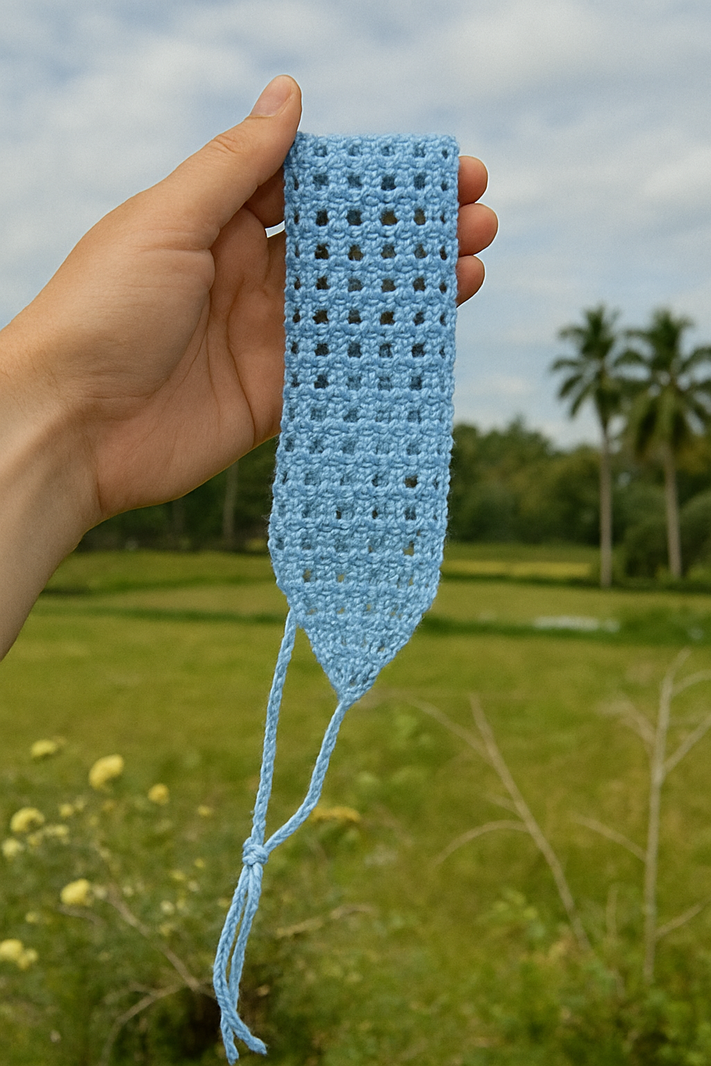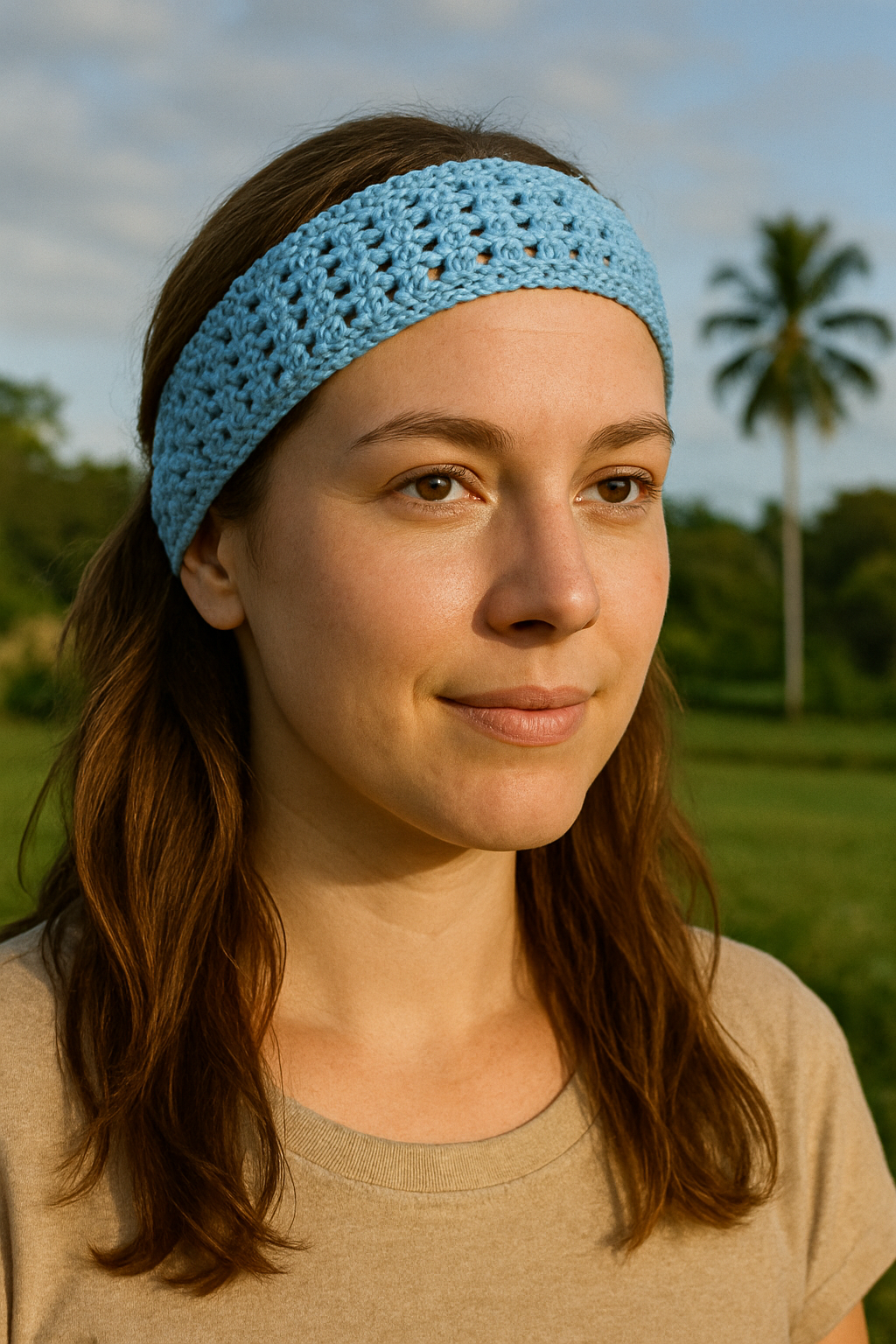 A beautiful and practical crochet hair band in a serene blue color. Handcrafted with care, this accessory adds a unique touch to any hairstyle while offering a comfortable fit for daily wear. Perfect for adding a pop of color and elegance to your look, whether you’re dressing up or down.